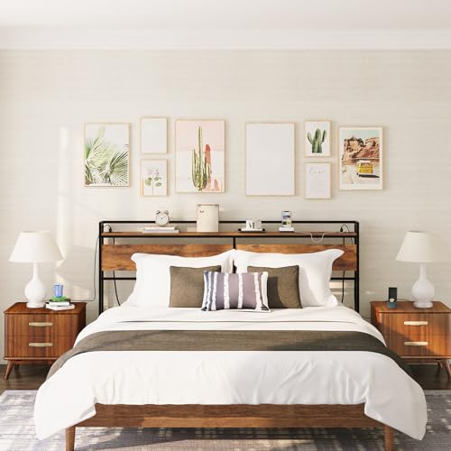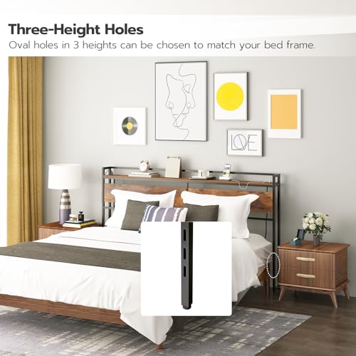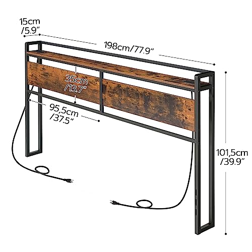 HOOBRO King Size Headboard, Headboard with 2 Outlets and 4 USB Ports, Adjustable Height, Storage Rack, Sturdy and Stable, Easy Assembly, Rustic Brown and Black