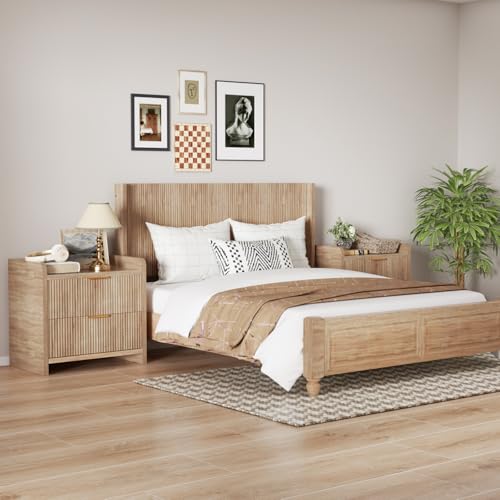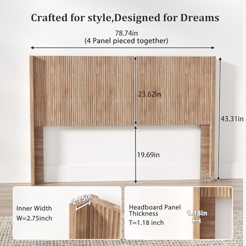【Stylish Fluted Panel Design】The surface adopts a wood grain design and a fluted design,ensuring durability and luxurious enjoyment. this charming king headboard with fluted panel styling is just what brings a comforting ambiance to any rustic or modern mid-century bedroom.This wooden headboard king can fit in perfectly with all kinds of home decor styles.