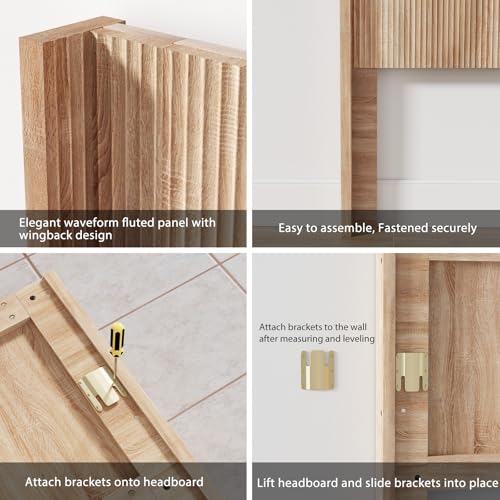King Size Fluted Headboard ONLY – Wall Mount Wood Headboard, Rustic & Modern Farmhouse,Boho,Fluted Panel,Wingback Design (Oak, King)