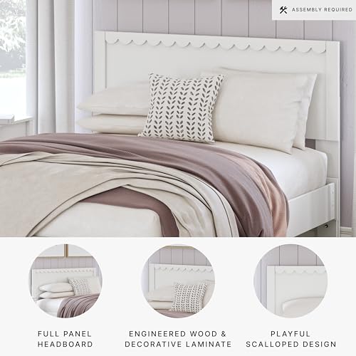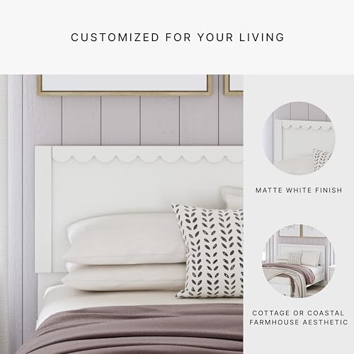 FULL PANEL HEADBOARD: Thanks to its playful scallop design and matte white finish, this twin panel headboard is perfect for cottage or coastal farmhouse interiors. The look is timeless
