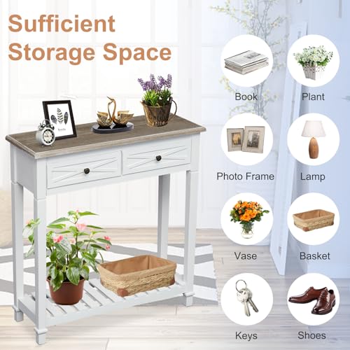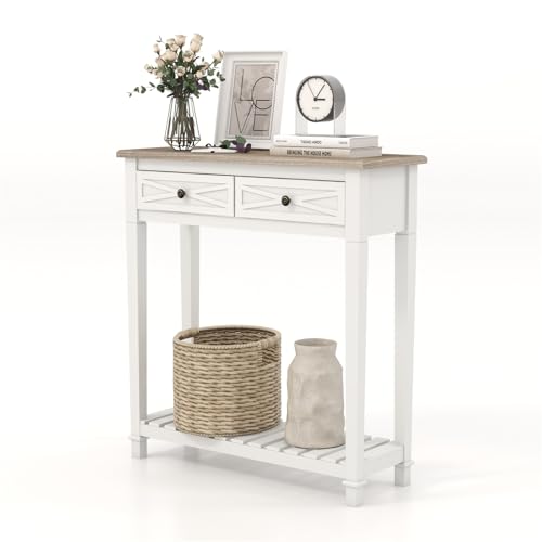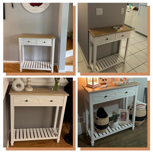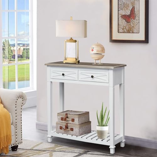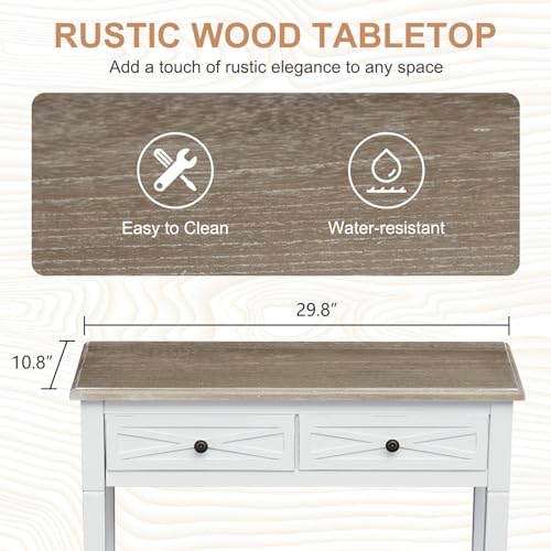 JSUN7 Entryway Table with Storage – Narrow Console Table with 2 Drawers and Shelf, Farmhouse Sofa Table, Wooden Small Hallway Tables for Entryway, Living Room, Hallway, Distressed White