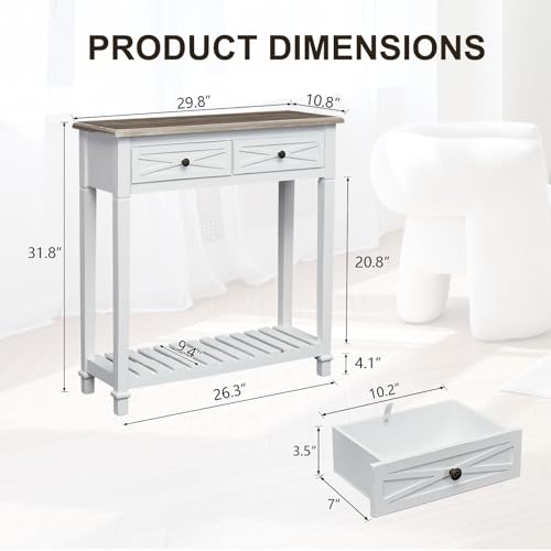 kinbor Entryway Table – White Console Table with 2 Drawers, Narrow Small Console Table with Storage Shelf for Entryway, Living Room, Hallway, White
