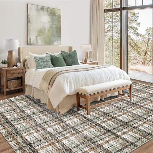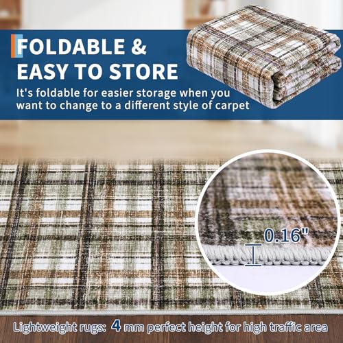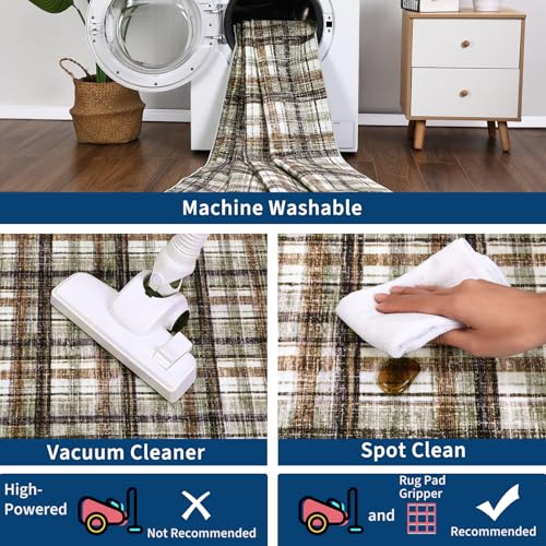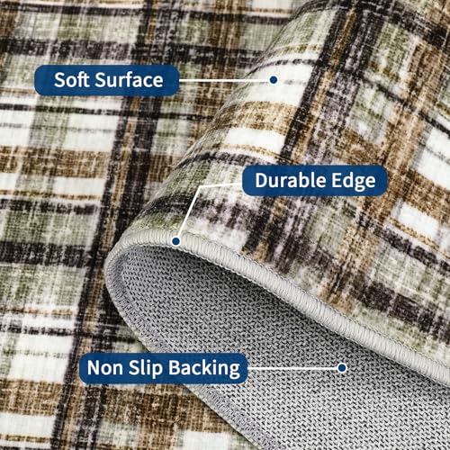 Charming Farmhouse Aesthetic: This washable area rug features a stylish plaid pattern in a charming farmhouse color scheme that embodies British design, effortlessly enhancing your living room, bedroom, or any indoor space with a touch of rustic elegance