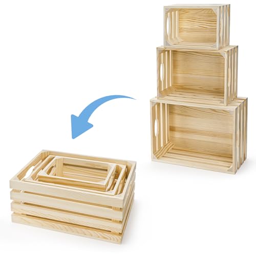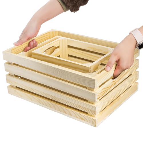 ZENFUN 3 Pack Wooden Nesting Crates with Handles, Decorative Hand Crafted Wood Box Nesting Crate Farmhouse Storage Basket Container for Display and Organization, Home Centerpieces