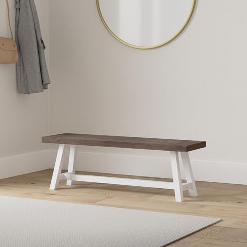 Cytheria Indoor Farmhouse Dark Brown Sandblast Finish Acacia Wood Dining Bench with White Rustic Metal Finish Frame
