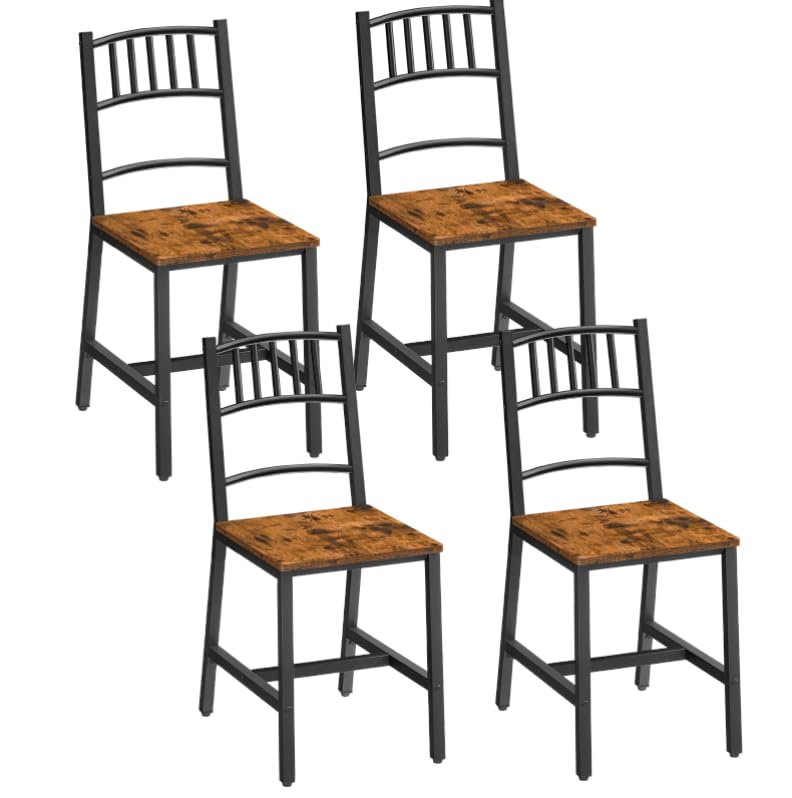 HOOBRO Kitchen Chairs Set of 4, Wooden Dining Room Chairs with Metal Frame, Dining Chair with Back, Easy to Assemble, Farmhouse Dining Chair for Living Room, Rustic Brown and Black BF39CDP401