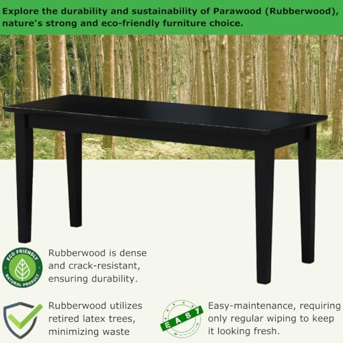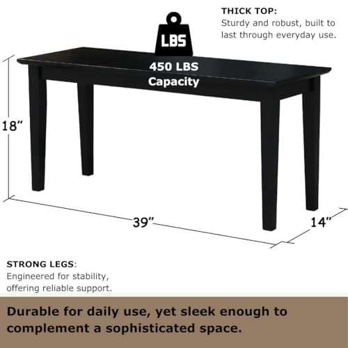 IC INTERNATIONAL CONCEPTS Shaker Style Bench Real/Solid Parawood, Kitchen/Dining, Sturdy & Reliable Seating, Easy Assembly, 39″W x 14″D x 18″H, 450 Lbs Wt. Capcity, Black