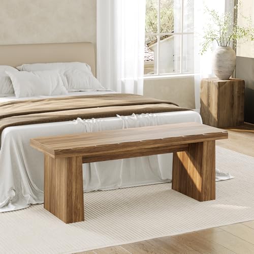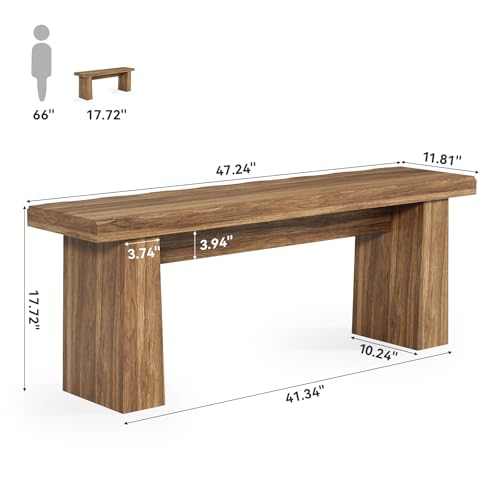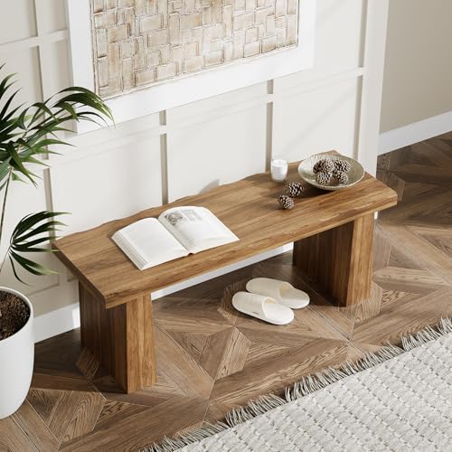 LITTLE TREE 47-Inch Wooden Entryway Bench, Farmhouse Dining Bench with Sturdy Frame for Dining Room, Bedroom, Living Room Hallway Kitchen, Easy Assembly (Walnut)