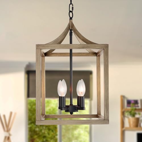 Be the first to review “4-Light Farmhouse Chandelier – Industrial Lantern Ceiling Fixture with Painted Wood Metal Cage, Geometric Pendant Chandeliers Light for Entryway, Foyer, Kitchen, E12 Base”