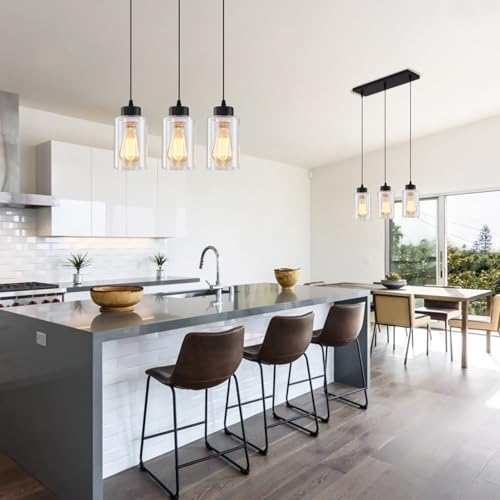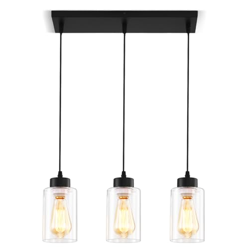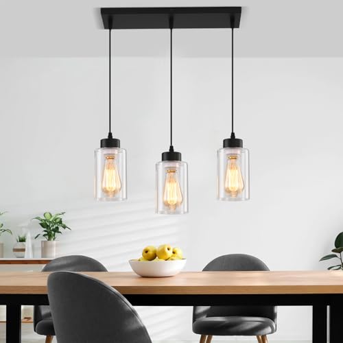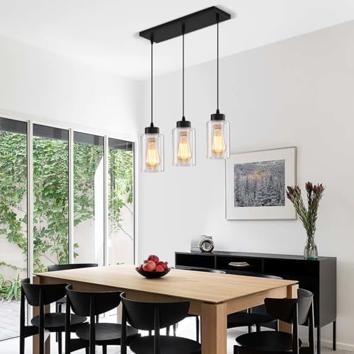 Black Chandelier,Farmhouse Light Fixtures Over Table, Dining Room Light Fixture Kitchen Island Lighting Chandeliers,Modern Pendant Light with Clear Glass Shade,Industrial Hanging Lighting