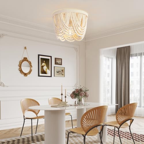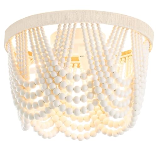 Be the first to review “Boho Wood Beaded Chandelier,LED Flush Mount Ceiling Light,Farmhouse Rustic White Hemp Rope Chandeliers Fixture for Bedroom,Drawing Room,Kitchen, Entryway,Dining Room(3-Light)”