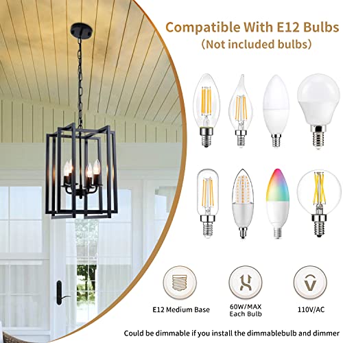 Easy to Install & Bulb Requirement: The kitchen island Industrial light fixtures includes all necessary assembly for quick and easy installation. The package contains clear instructions. Recommend use 4 E12 bulbs, compatible with LED, incandescent or edison bulbs (60W max, bulb not included). If dimming is required, use dimmable bulbs and a compatible dimmer switch(dimmer not included).
