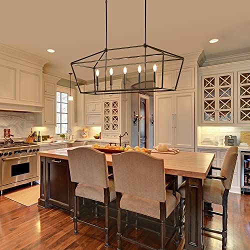💡【Black Chandelier Classic Farmhouse Style】Linear Structure Chandelier has the effect of extending your room, gets you a much more open and relaxing area. Matte black finish with the geometric shape lampshade and 5 evenly distributed upward light bulb design candlestick element elevates your house style, making it the focal point in your space.