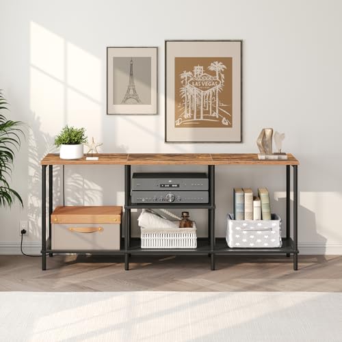 Industrial TV Stand with Charging Station for up to 55″ TVs, Entertainment Center with 3-Tier Storage Shelves, TV Console Table for Living Room, Metal Frame, Rustic Brown TVHR131E01
