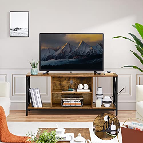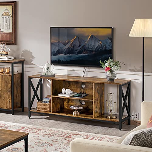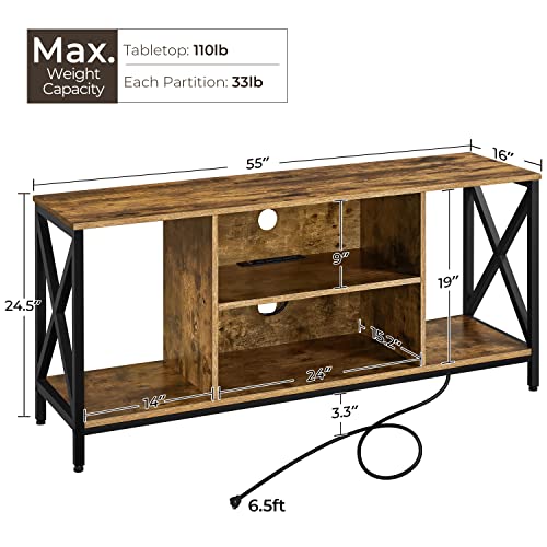 Yaheetech TV Stand for 65 inch TV, Farmhouse TV Console Table with Power Outlets, Gaming Entertainment Center for Living Room, Rustic Brown