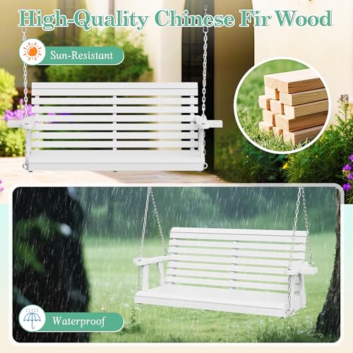 【Swing material】The patio wooden swing is made of solid fir wood coated with protective paint and can withstand all outdoor weather. It can be wiped clean quickly and conveniently.