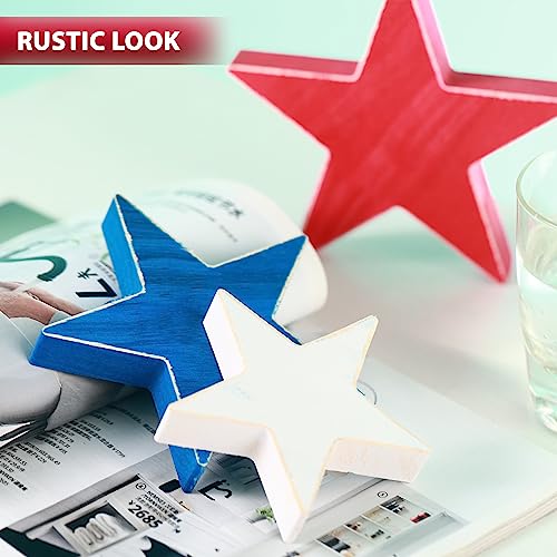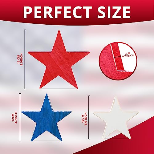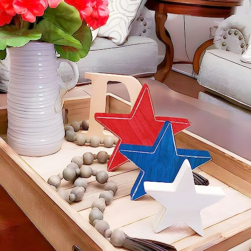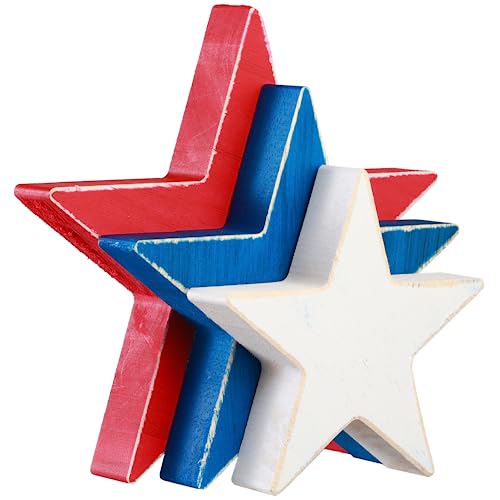 4th of July Décor Handmade Rustic Patriotic Wood Stars – Set of 3, Red, White & Blue, Double-Sided Table Signs for Independence Day Decorations (Star1)